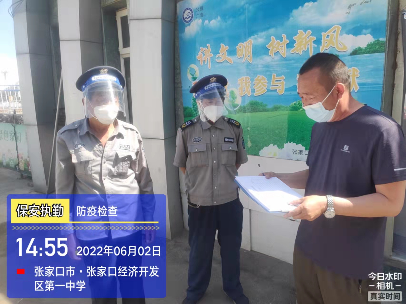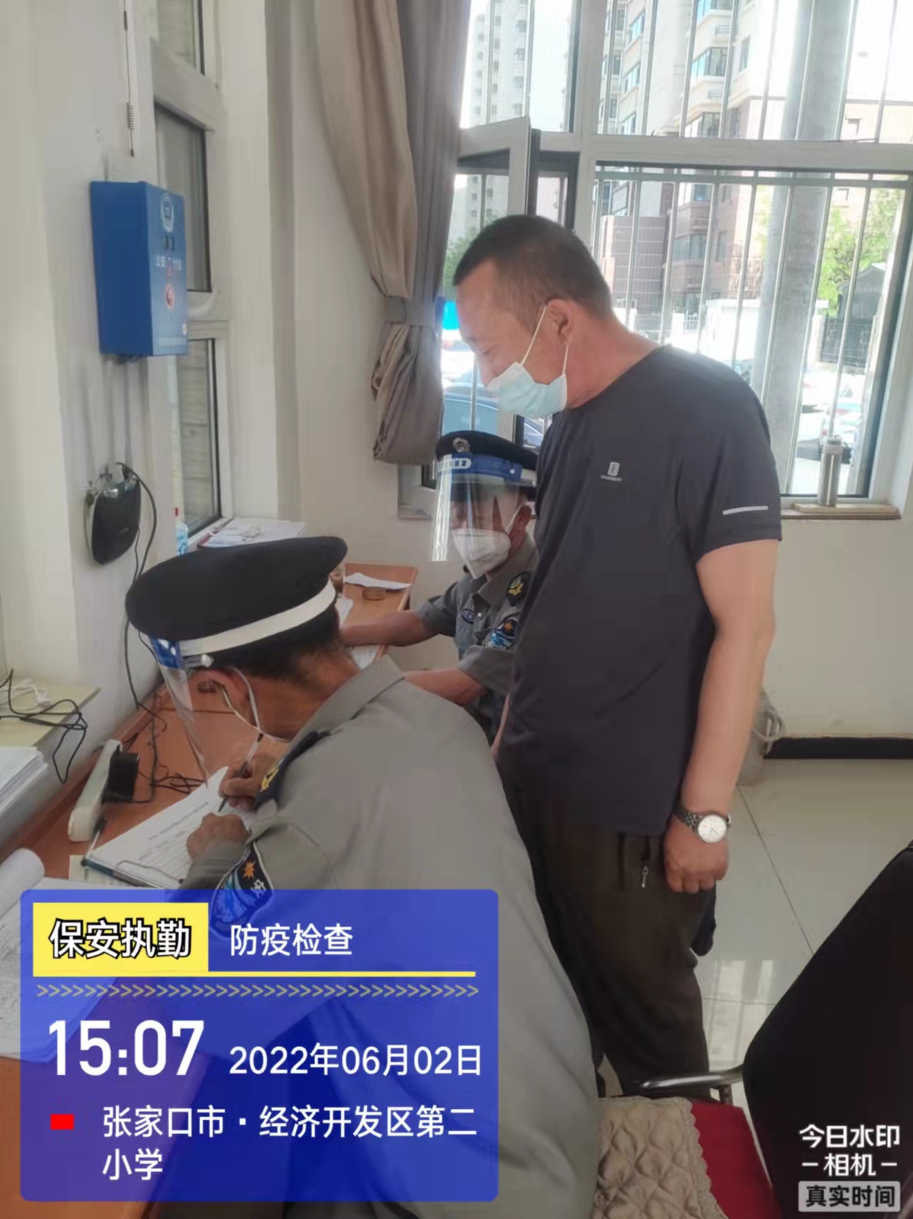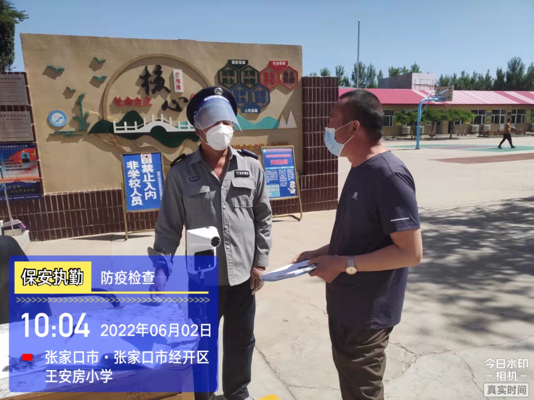 會后,我公司迅速召開“疫情期間學校門衛(wèi)安全防控工作要求”的會議,制定了校園安全防疫規(guī)定:疫情防控期間,校園保安隊員必須穿制服,規(guī)范佩戴“三件套”(防護隔離面罩、N95口罩、一次性PVC手套);進出校園的師生必須測量體溫,外來人員需登記、測溫、掃碼(幸福張家口,呈綠碼)、且持7日內核酸陰性檢測結果;保安室需保持干凈整潔,物品擺放有序,勤開窗通風,定期噴灑消毒藥水。為此,公司特成立校園防疫檢查小組,由副經理帶隊,協(xié)同主管大隊長對經開區(qū)所有中小學校安保崗位進行防疫工作檢查,檢查期間,發(fā)現(xiàn)問題,現(xiàn)場處理,并及時與校方領導溝通,杜絕同樣問題再次出現(xiàn),確保校園防疫安保工作萬無一失,為各校師生鑄就一道安全防線!