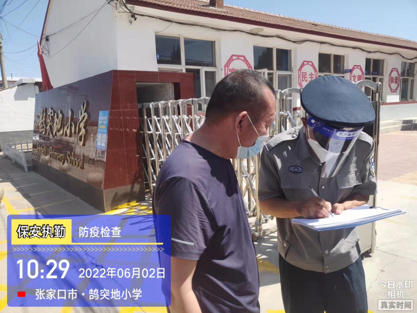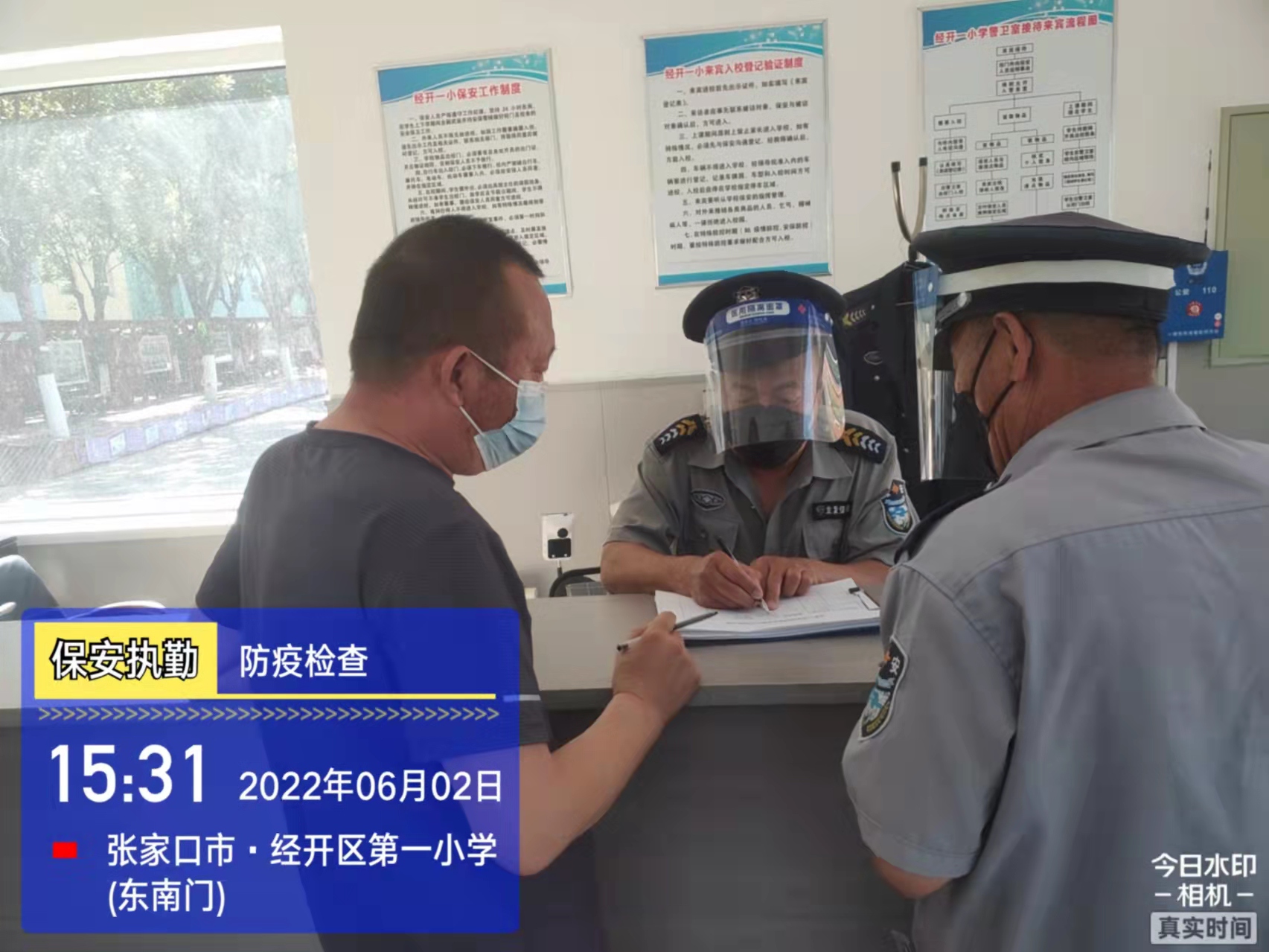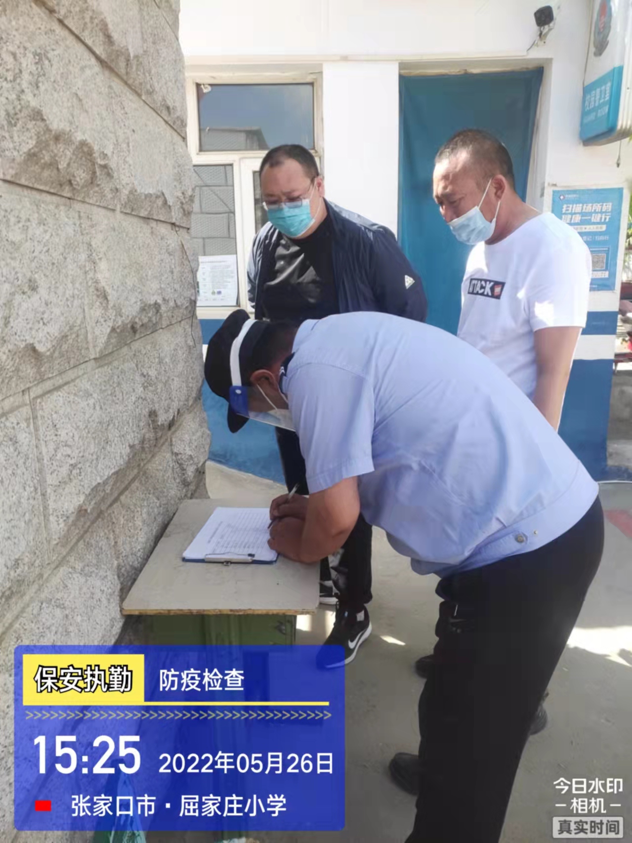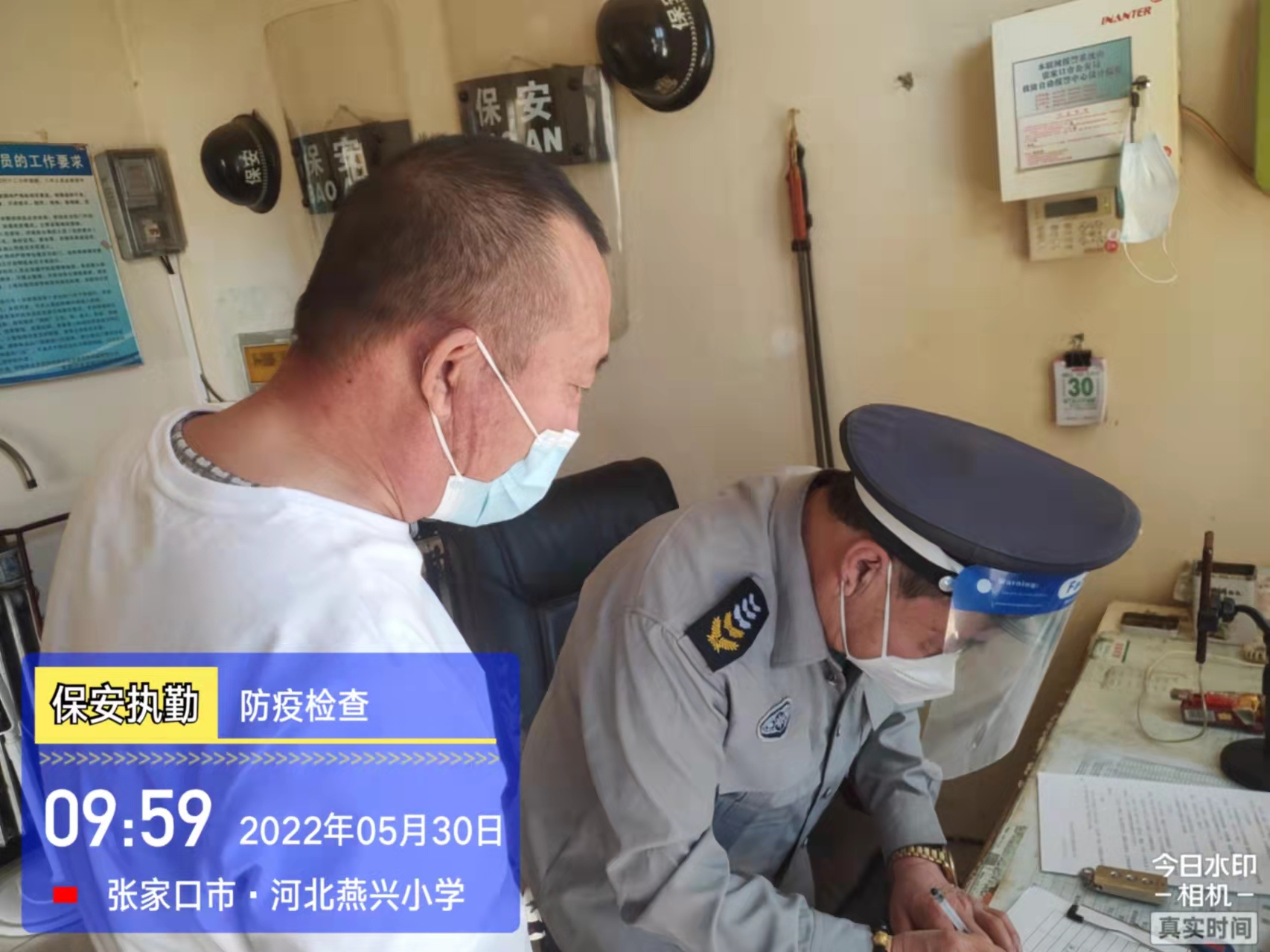 會后,我公司迅速召開“疫情期間學校門衛(wèi)安全防控工作要求”的會議,制定了校園安全防疫規(guī)定:疫情防控期間,校園保安隊員必須穿制服,規(guī)范佩戴“三件套”(防護隔離面罩、N95口罩、一次性PVC手套);進出校園的師生必須測量體溫,外來人員需登記、測溫、掃碼(幸福張家口,呈綠碼)、且持7日內核酸陰性檢測結果;保安室需保持干凈整潔,物品擺放有序,勤開窗通風,定期噴灑消毒藥水。為此,公司特成立校園防疫檢查小組,由副經理帶隊,協(xié)同主管大隊長對經開區(qū)所有中小學校安保崗位進行防疫工作檢查,檢查期間,發(fā)現(xiàn)問題,現(xiàn)場處理,并及時與校方領導溝通,杜絕同樣問題再次出現(xiàn),確保校園防疫安保工作萬無一失,為各校師生鑄就一道安全防線!